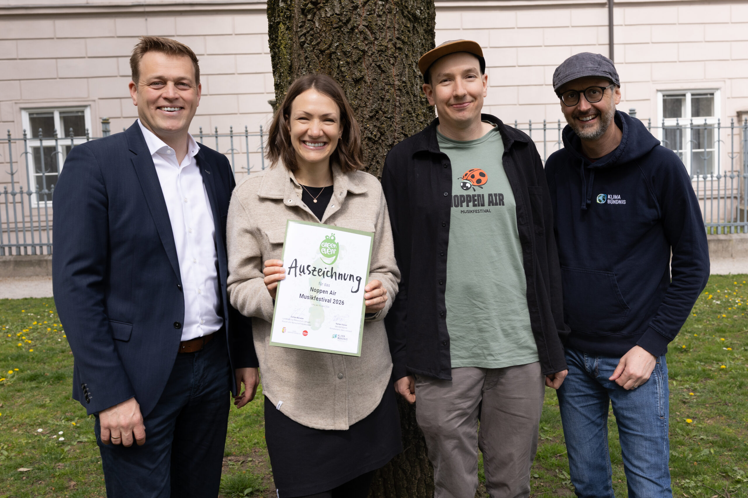 Umwelt- und Klima-Landesrat Stefan Kaineder gratulierte dem Festivalteam persönlich zur Auszeichnung. Für ihn ist das Noppen Air ein Vorzeigeprojekt: